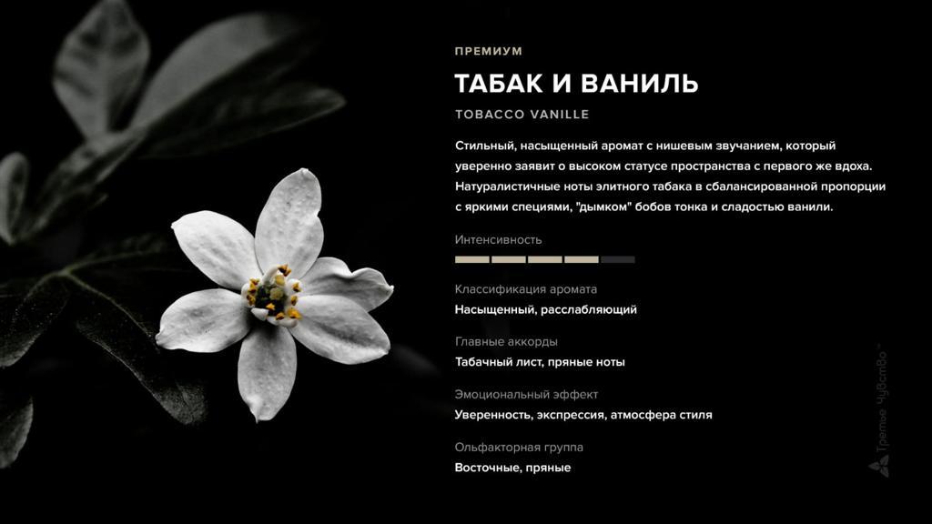 Элитный Табак в сбалансированной пропорции с яркими специями, «дымком» бобов тонка и сладостью ванили станет отличной визитной карточкой для компании, для которой статусность и имидж не пустой звук🔥
